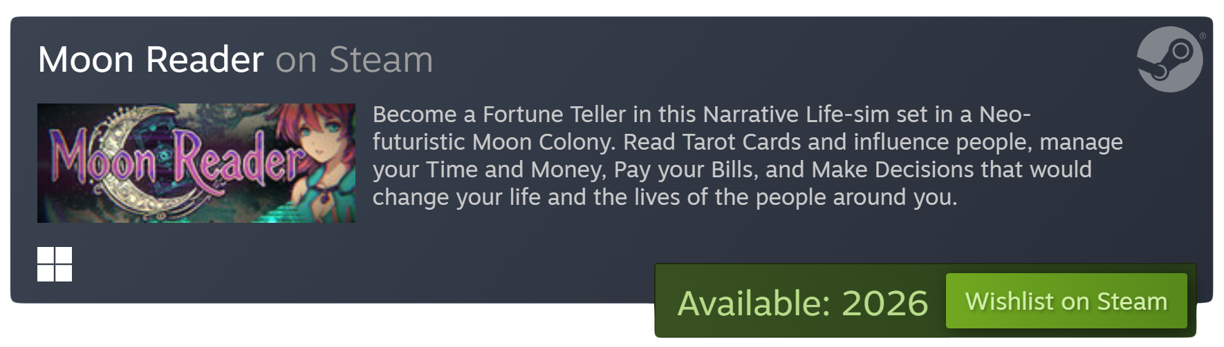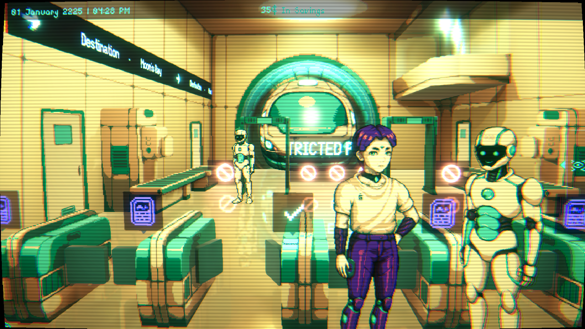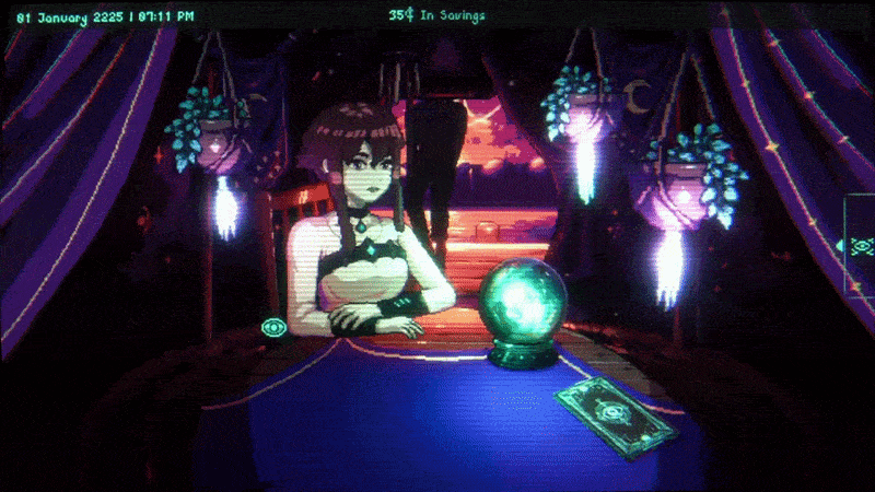 Inspired by games like "Papers, Please" and "VA-11 Hall-A: Cyberpunk Bartender Action", this is "Moon Reader".