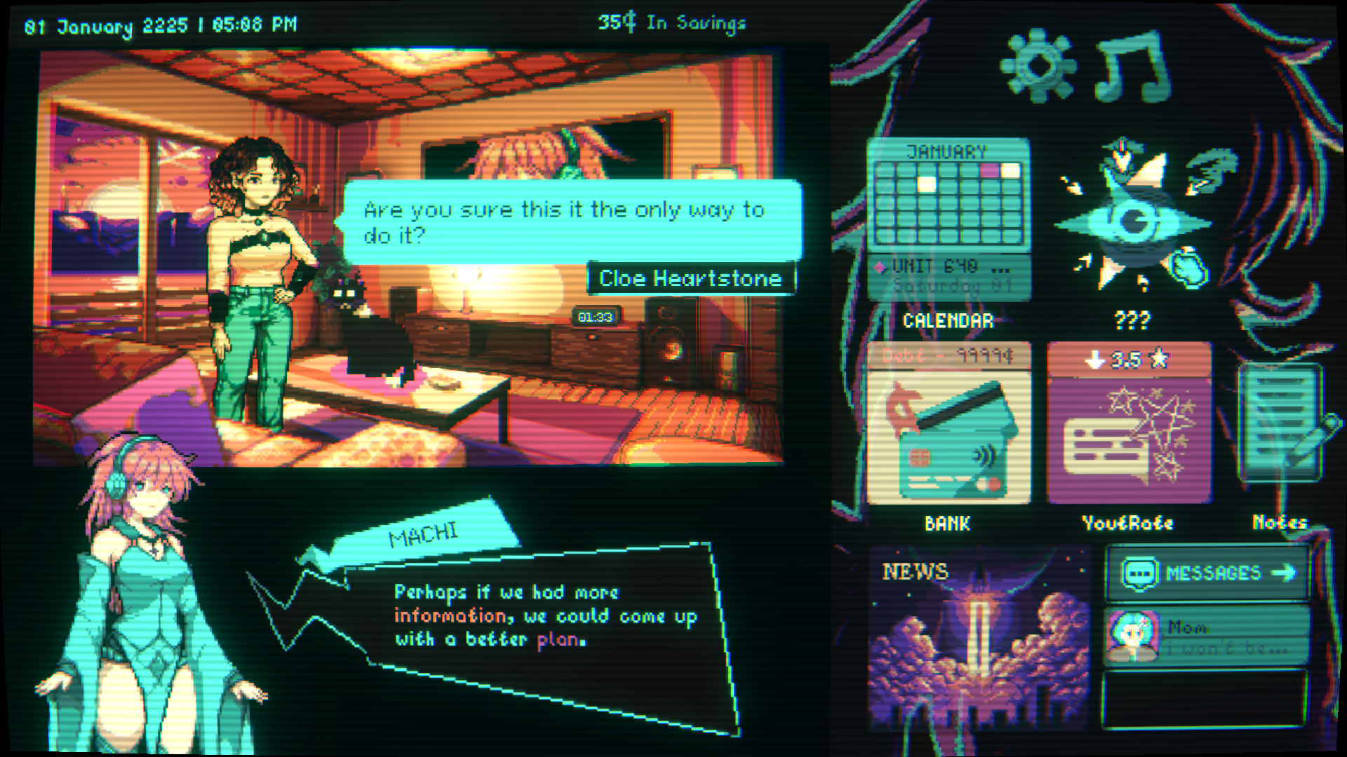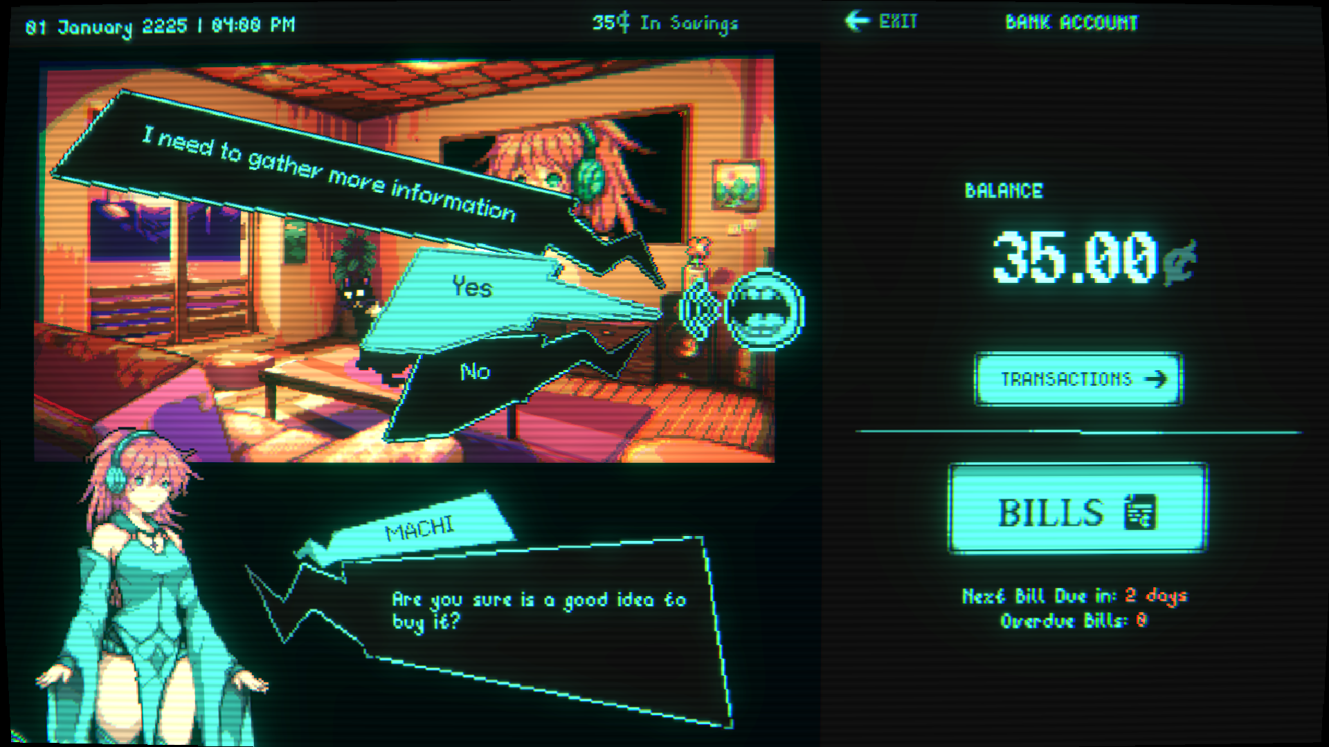 - Narrative Life-Sim: Your decisions shape the narrative. Play your cards, take decisions and pay your bills, all of which affect how the story goes.